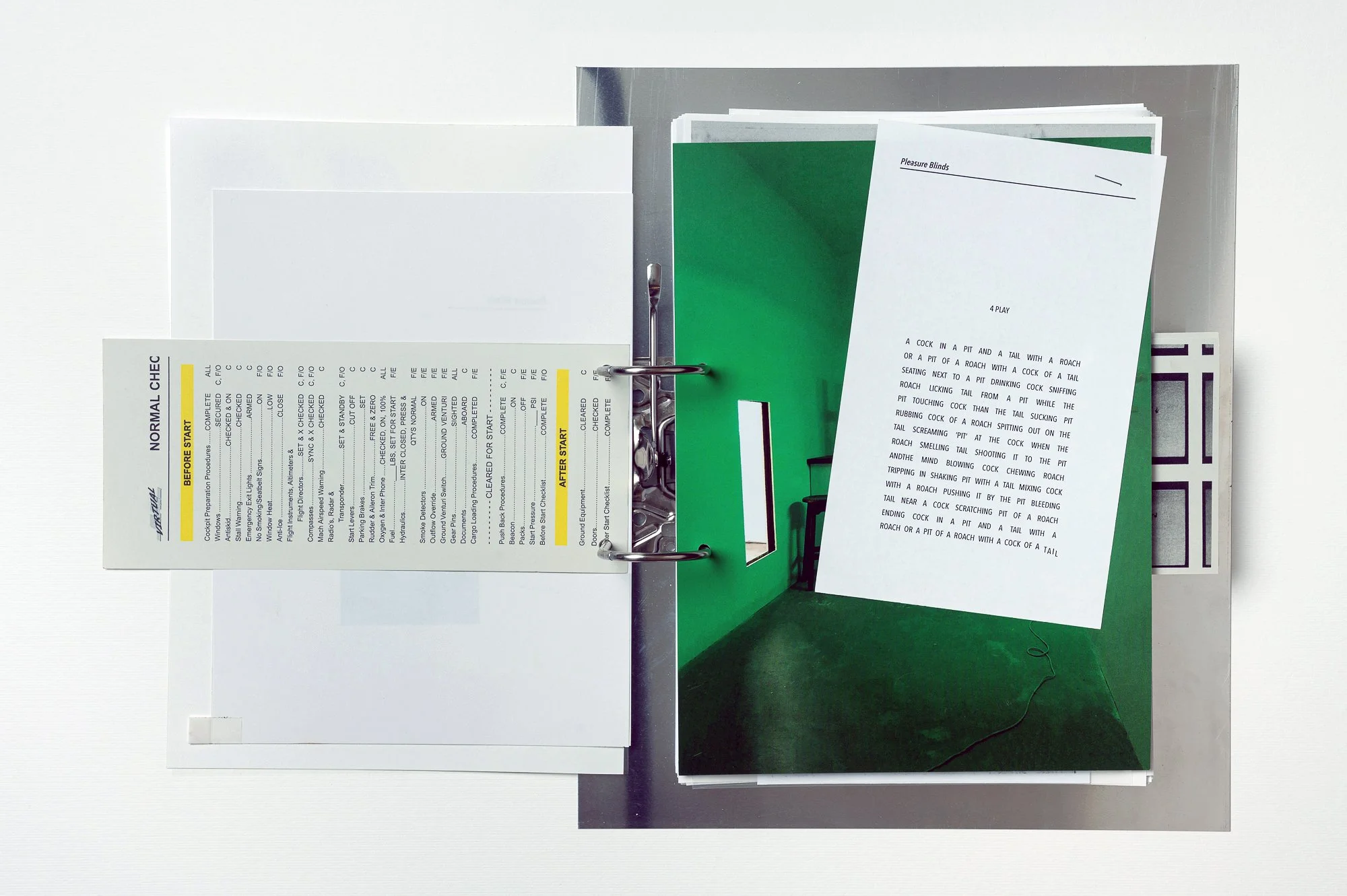 A single copy book featuring a blunt version (aka "Butcher's cut") of the 2023 book "How Do You Short Circuit Control (East wing, left lobe and middle of the road)". The book consists of two parts: the first is an intro, presenting an index of textual and visual confessions from recent years, some of which remain as raw references and some of which have become art works. The second part lays out a xerox version of the book "How Do You Short Circuit Control (East wing, left lobe and middle of the road)". An active covert listening device is placed within its pages.
